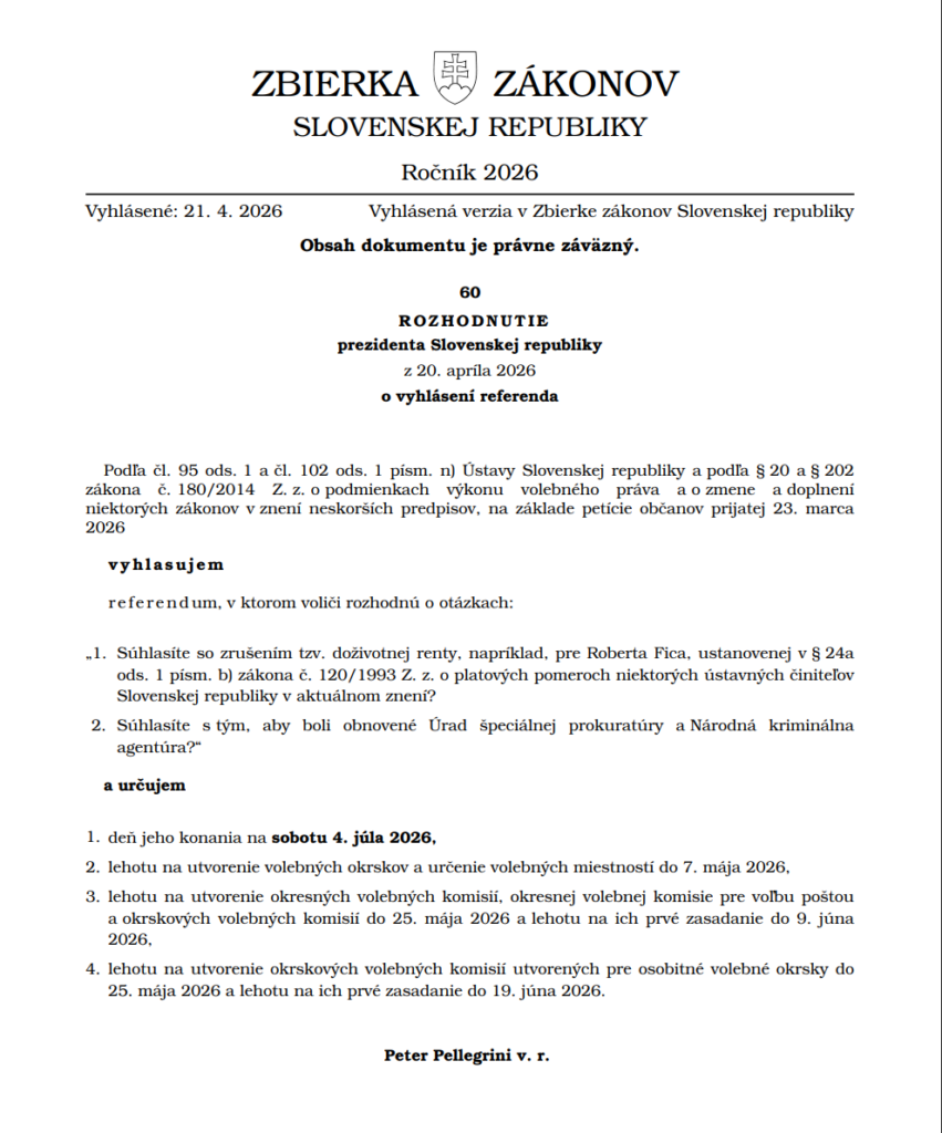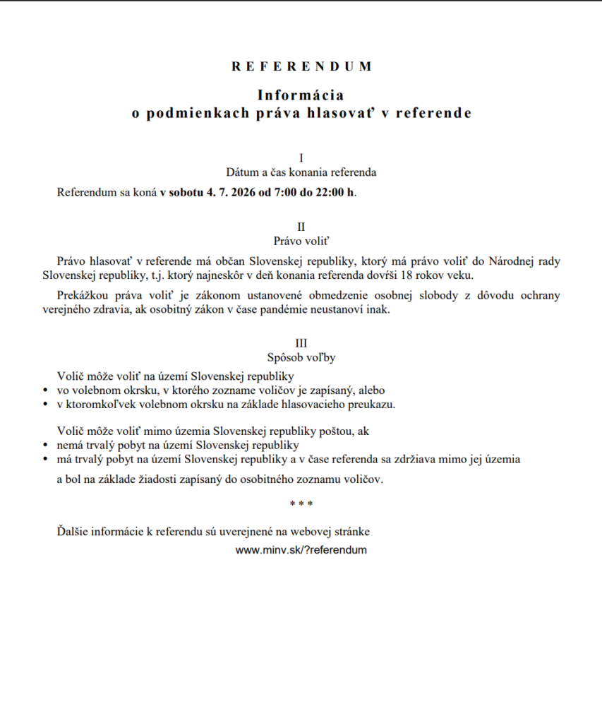 Vyhlásenie referenda 4. júna 2026